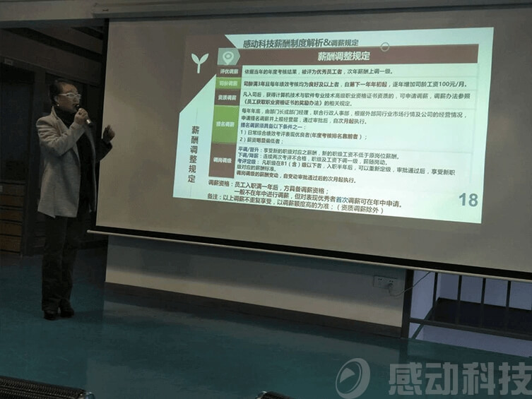 人事行政行政總監吳鴻對公司的組織架構圖、職業發展晉升通道及新的薪酬架構進行了詳細講解;同時,人事行政部經理韓婭茹又針對公司的各項行政人事管理制度及感動基金進行了要點解析。